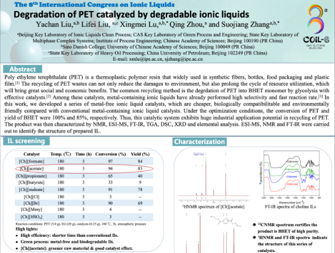 The 8th International Congress on Ionic Liquids (COIL-8), 2019, Beijing, China.